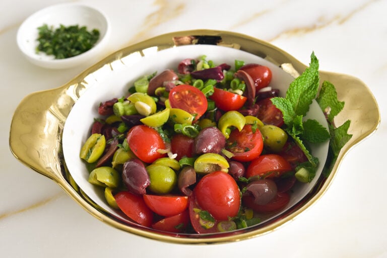 Olive salad can be scooped up like a dip with chips of any kind. Fabulous alongside a bowl of creamy labneh , Greek yogurt, or sour cream.