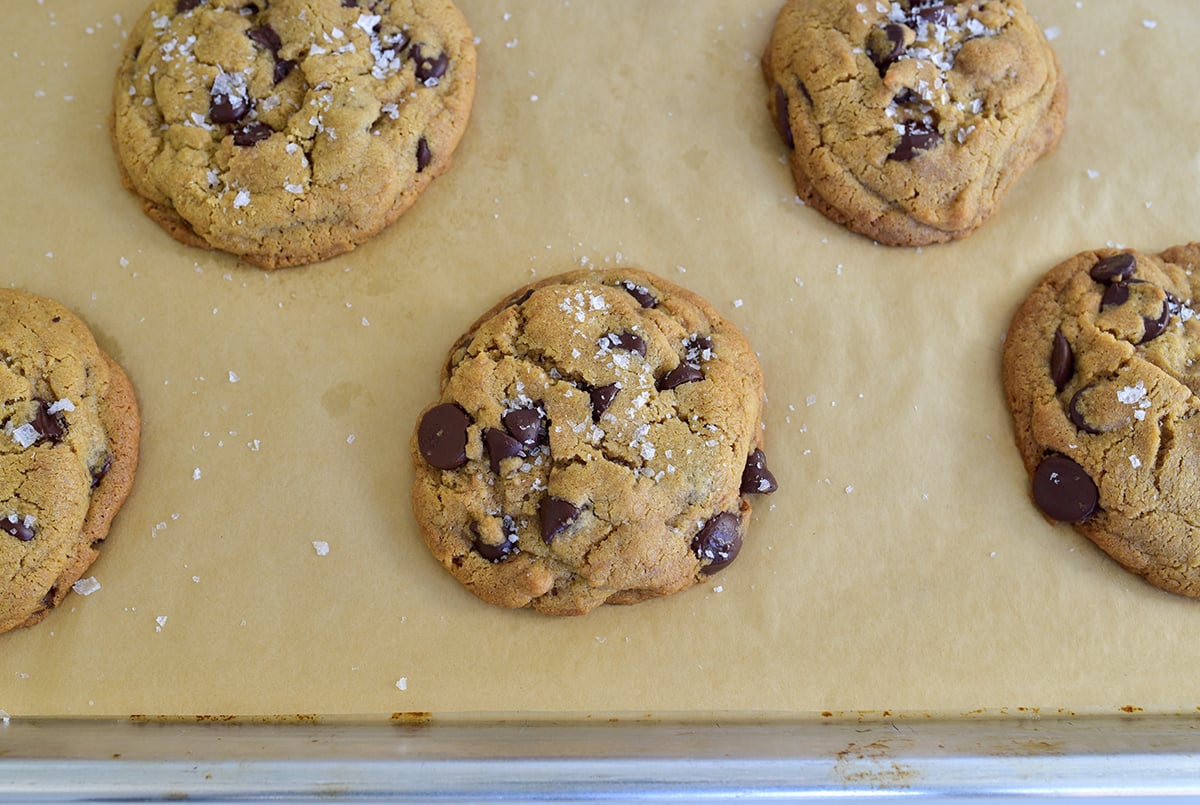 - Immediately sprinkle the flakey salt over the hot cookies. Allow the cookies to rest on the sheets for 2 minutes, then transfer the cookies to a wire rack to cool completely.